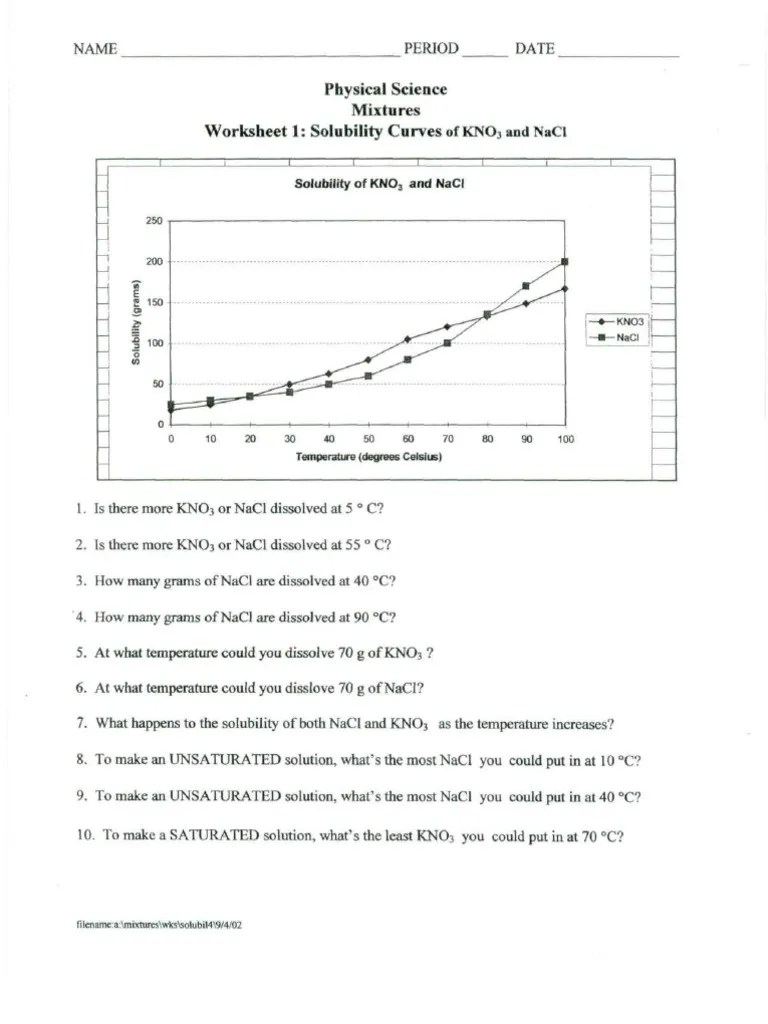 If the question requires a calculation, . Solubility curve practice problems worksheet 1. Live worksheets > english > chemistry > solutions > solubility curve practice . Solubility curve worksheet use your solubility curve graph provided to answer the . You can do the exercises online or download the worksheet as pdf.